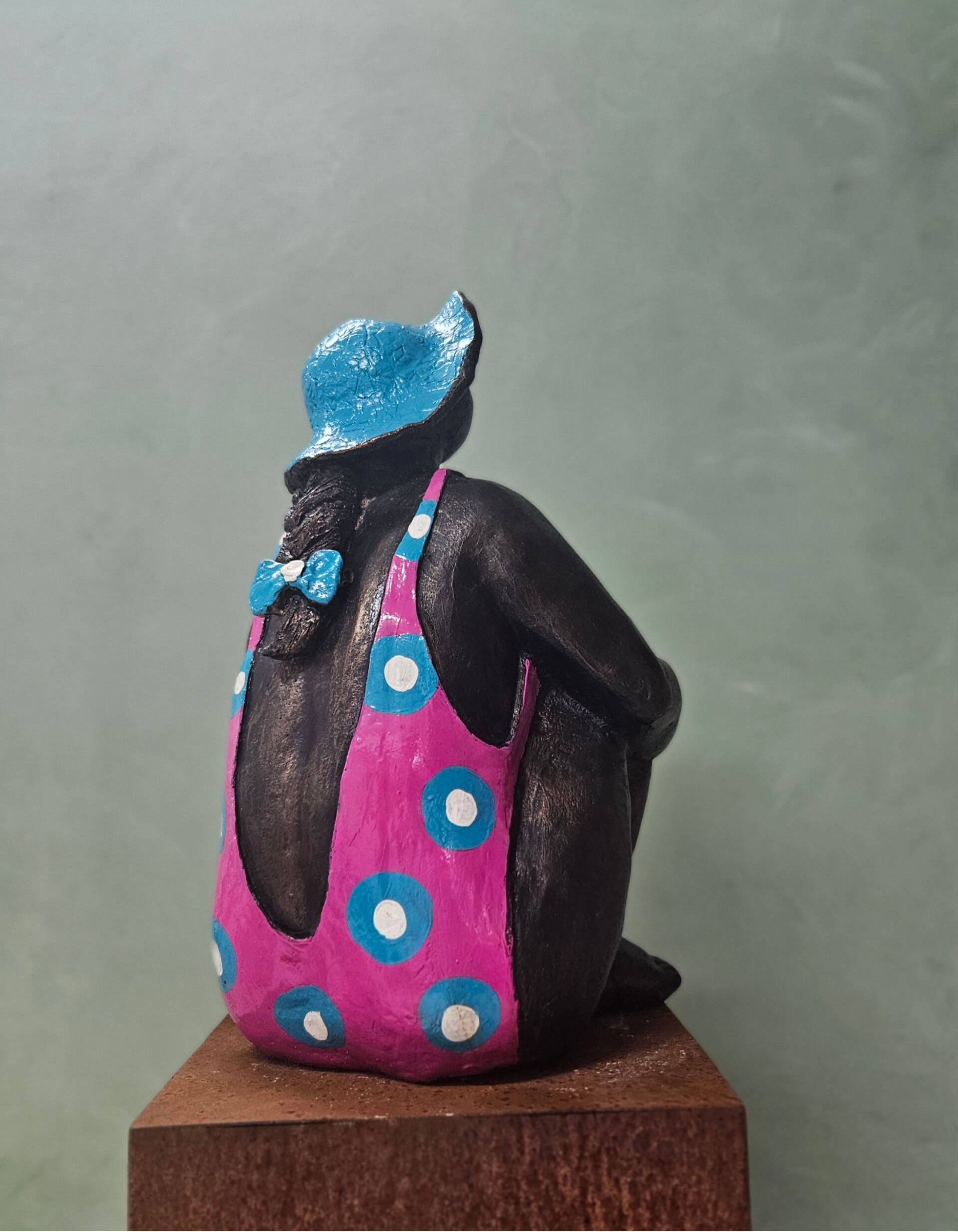 De serie "Zomerzotheid" is gegoten in resin (neolith). Ik maak de beelden in klei en deze worden door beeldengieterij Tenax voor mij in resin gegoten, waarna ik ze beschilder in een uniek patroon.